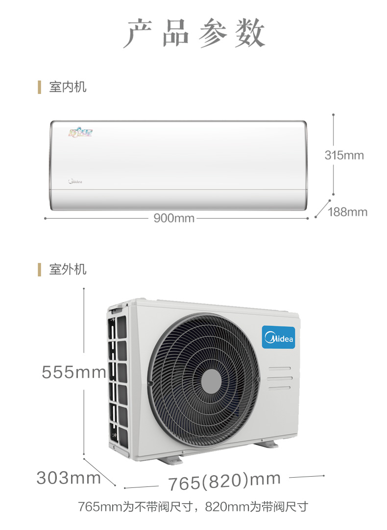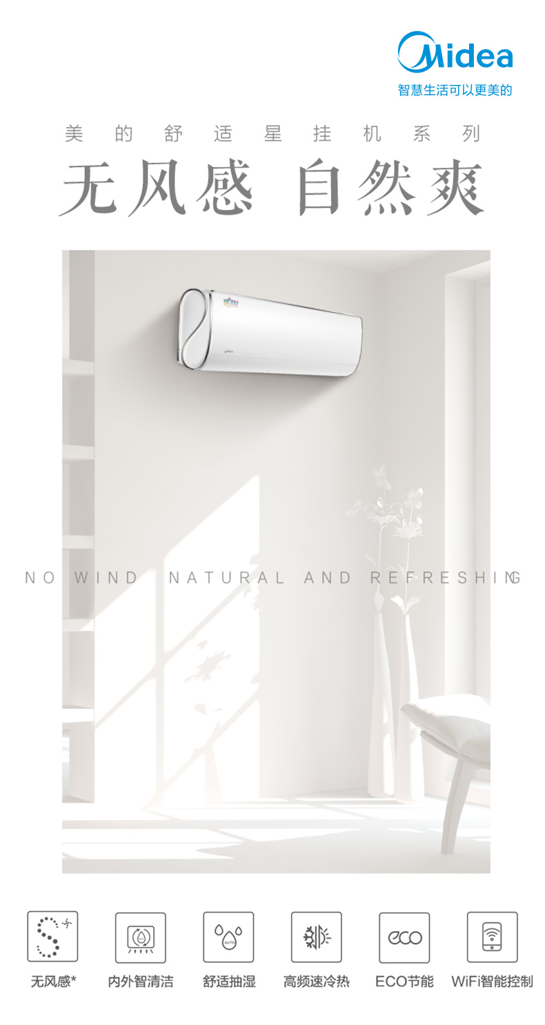 一匹26掛機系列 KFR-26GW/BDN8Y-TA101(1)A 變頻 分體套機 極地白 美的